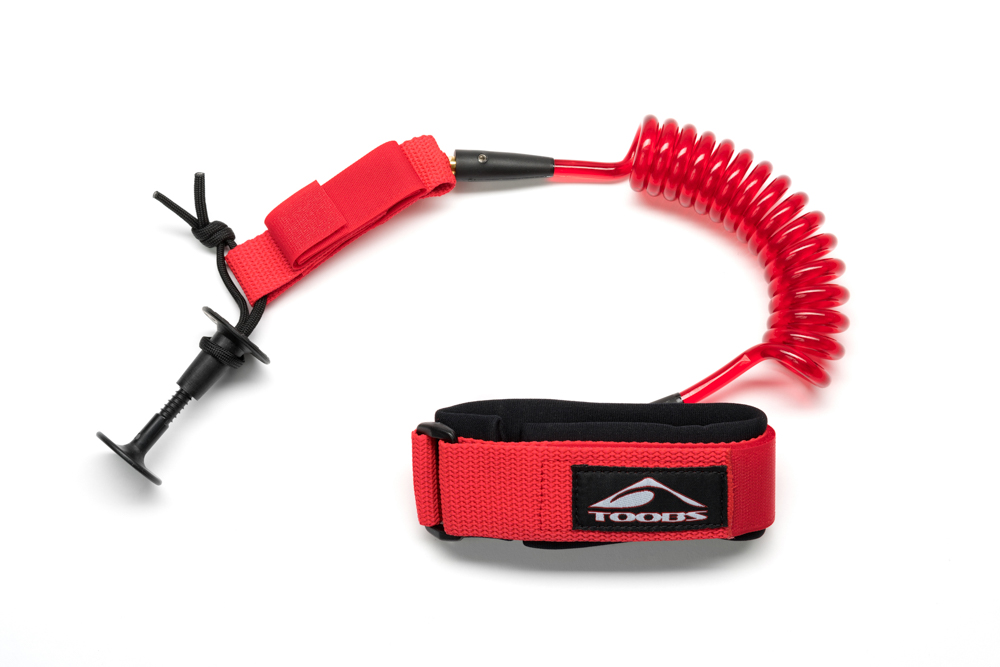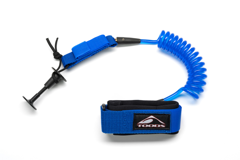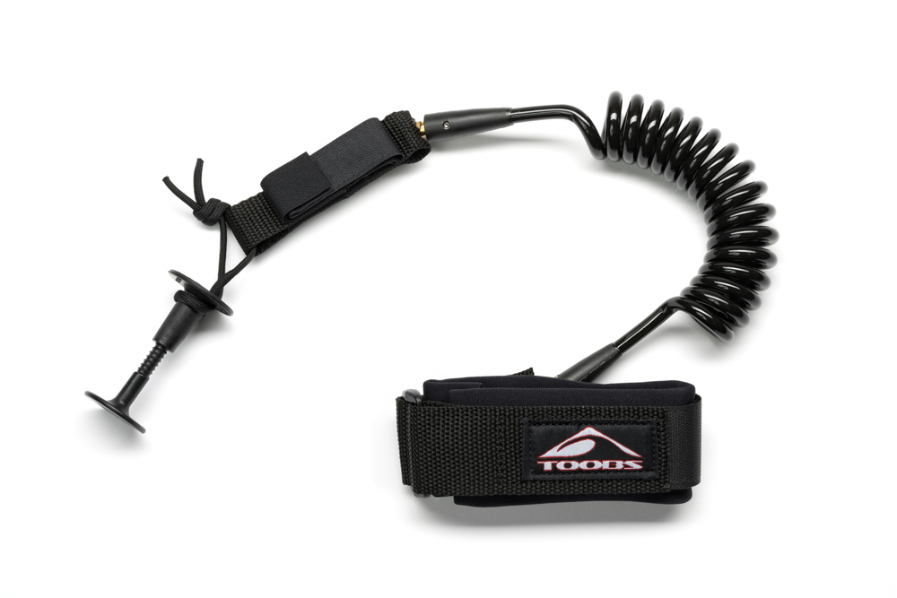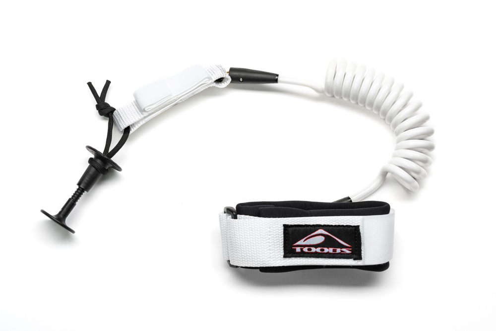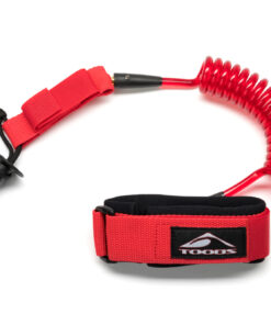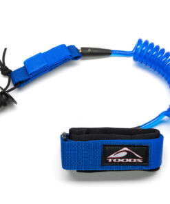 This durable pro coil leash for the bicep is 4.5′ in length (fully stretched) and made of urethane. It comes with molded ends, stand-away padded neoprene cuff with adjustable buckle, velcro rail saver, and flathead anchor.